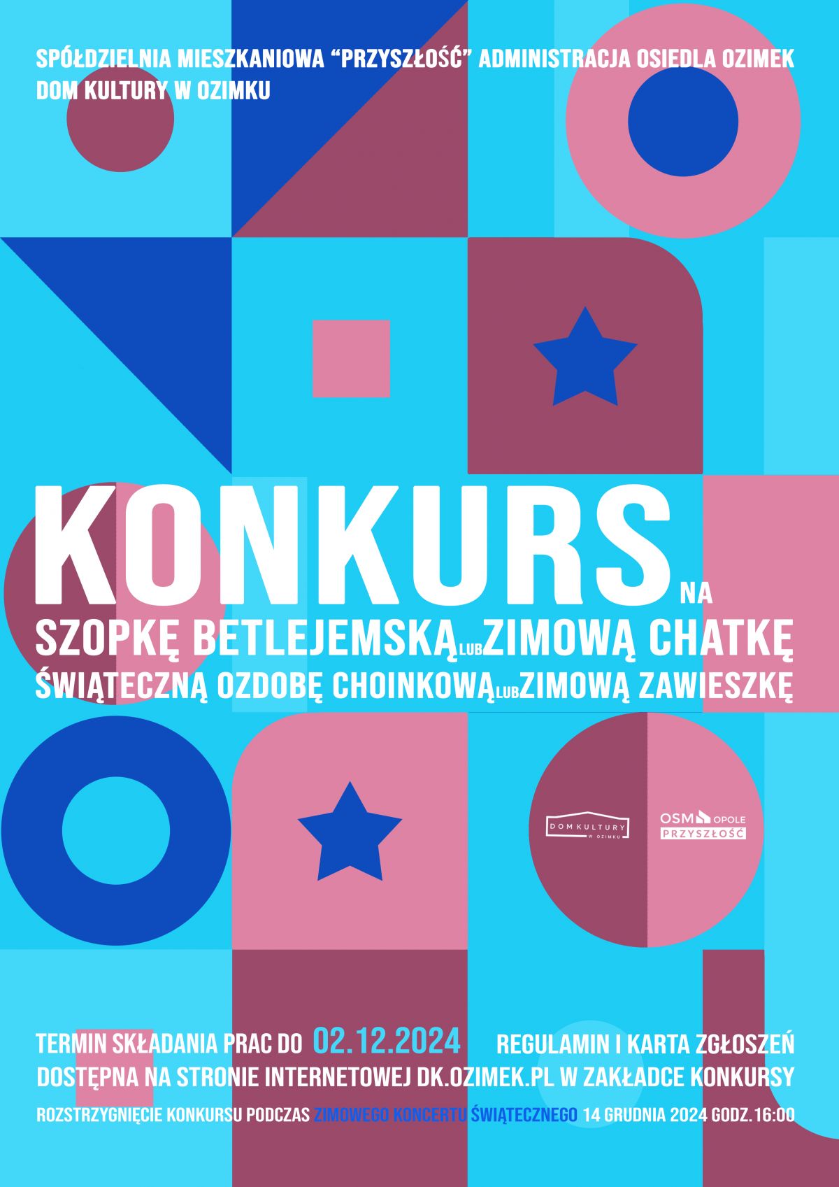 Jak co roku, także tym razem odbędzie się konkurs na Szopkę Betlejemską lub Chatkę Zimową, Świąteczną Ozdobę Choinkową lub Zimową Zawieszkę.