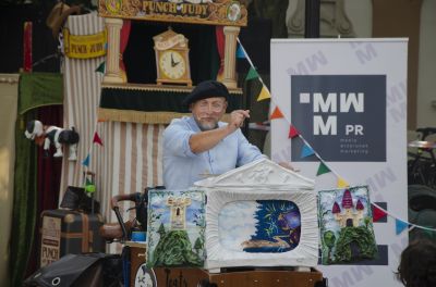 Na pierwszy rzut przedstawiamy Telesfora: człowieka, który odwiedził Ozimek na swoim baśń - rowerze (wyjaśnienie: rower cargo, na którym jeździ po całym kraju prezentując lalkowe spektakle na podstawie baśni Andersena).