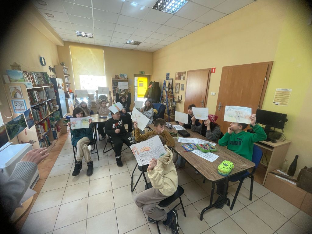 W dniu 17 marca 2025r w Fili Bibliotecznej w Grodźcu uczniowie klasy 5 z pobliskiej szkoły podstawowej wzięli udział w edukacyjnej lekcji pn. Krajobraz malowany słowami.