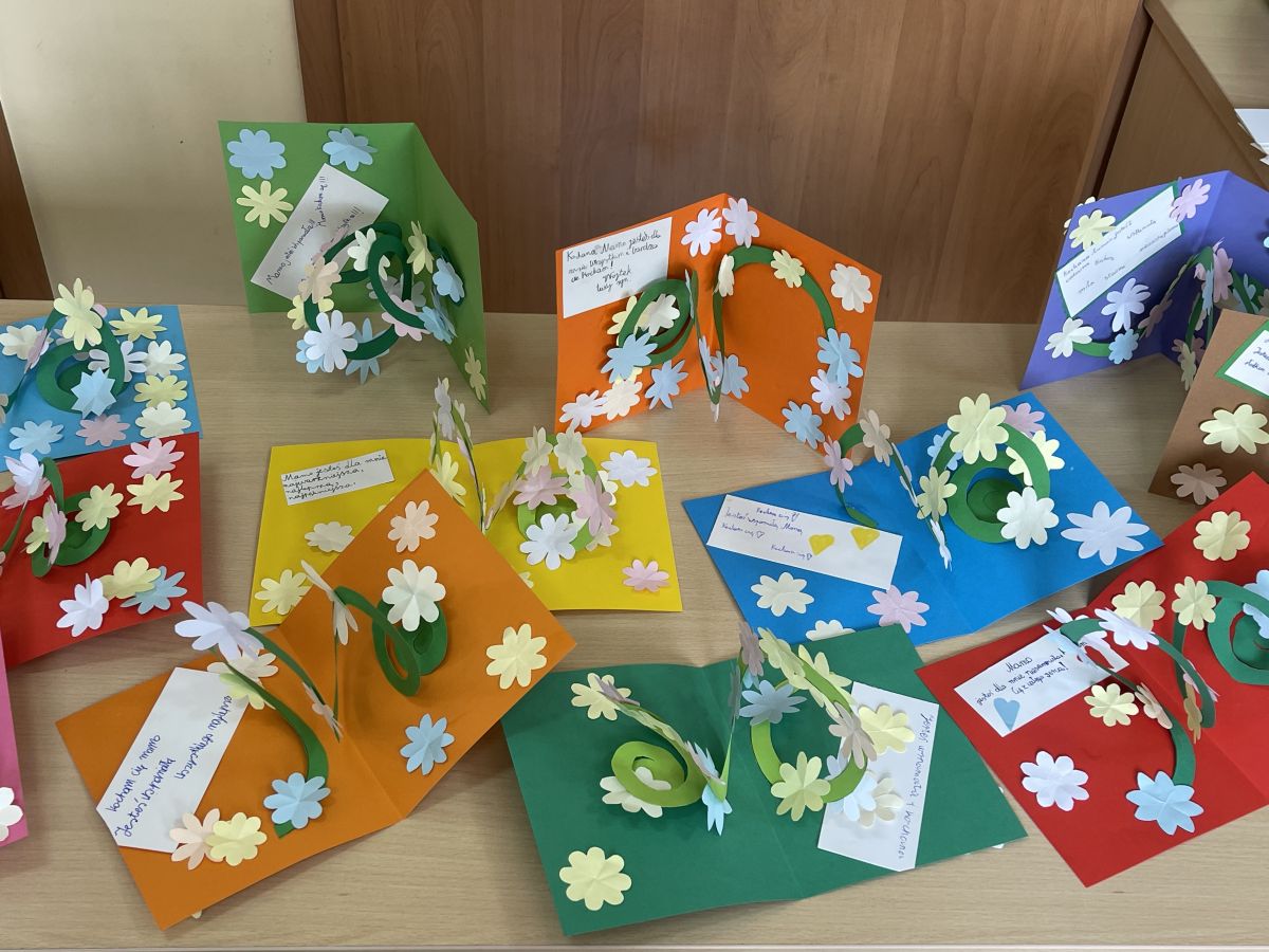 Zbliżający się Dzień Matki stał się okazją do zorganizowania 23 maja 2025r. w Filii Bibliotecznej w Grodźcu warsztatów plastycznych, których uczestnikami byli uczniowie kl. 4 z pobliskiej szkoły. Na zajęciach dzieci wykonywały dla swoich mam kwiatową kartkę w formie 3D. Z zewnątrz, skromnie wyglądające kartki, ożywały z chwilą ich otwarcia. Z ich wnętrza wysypywały się drobne pastelowe kwiatuszki, umocowane na spiralnej łodydze. Oczywiście, każda kartka zawierała również ciepłe słowa dzieci, adresatkami których były ich mamy.