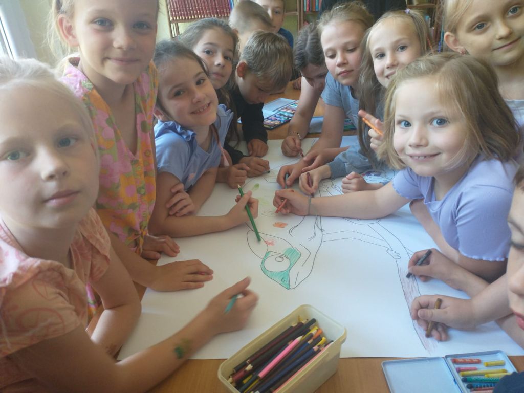 18 czerwca Leona poznała również grupa pierwszoklasistów z PSP nr 1 w Ozimku. Starsza grupa odbyła pogadankę o akceptacji siebie, wartości bycia sobą oraz dostrzegania u innych bogactwa wnętrza. Po zabawie ruchowej pierwszaki przystąpiły do wspólnego kolorowania dużego kameleona.
