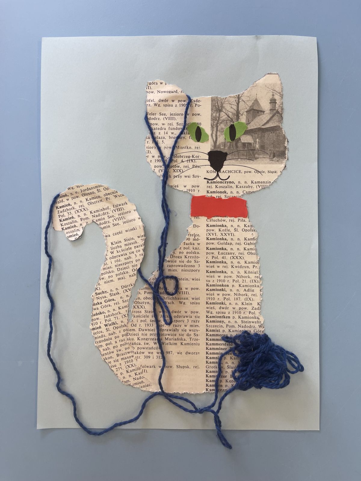 Dzieci wykonują pracę plastyczną poświęconą kotom