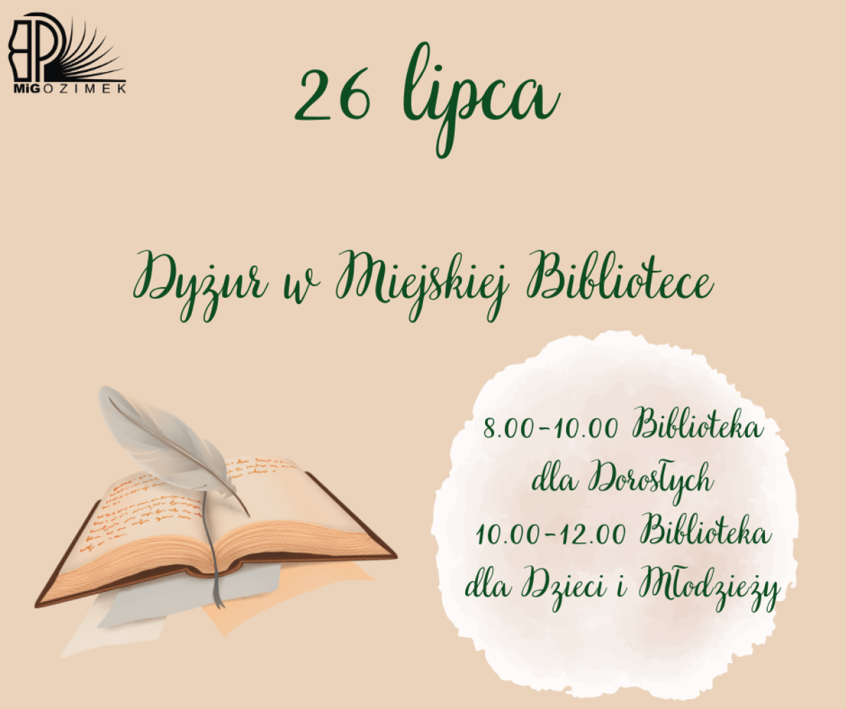 W sobotę, 26 lipca, Miejska Biblioteka w Ozimku będzie otwarta.