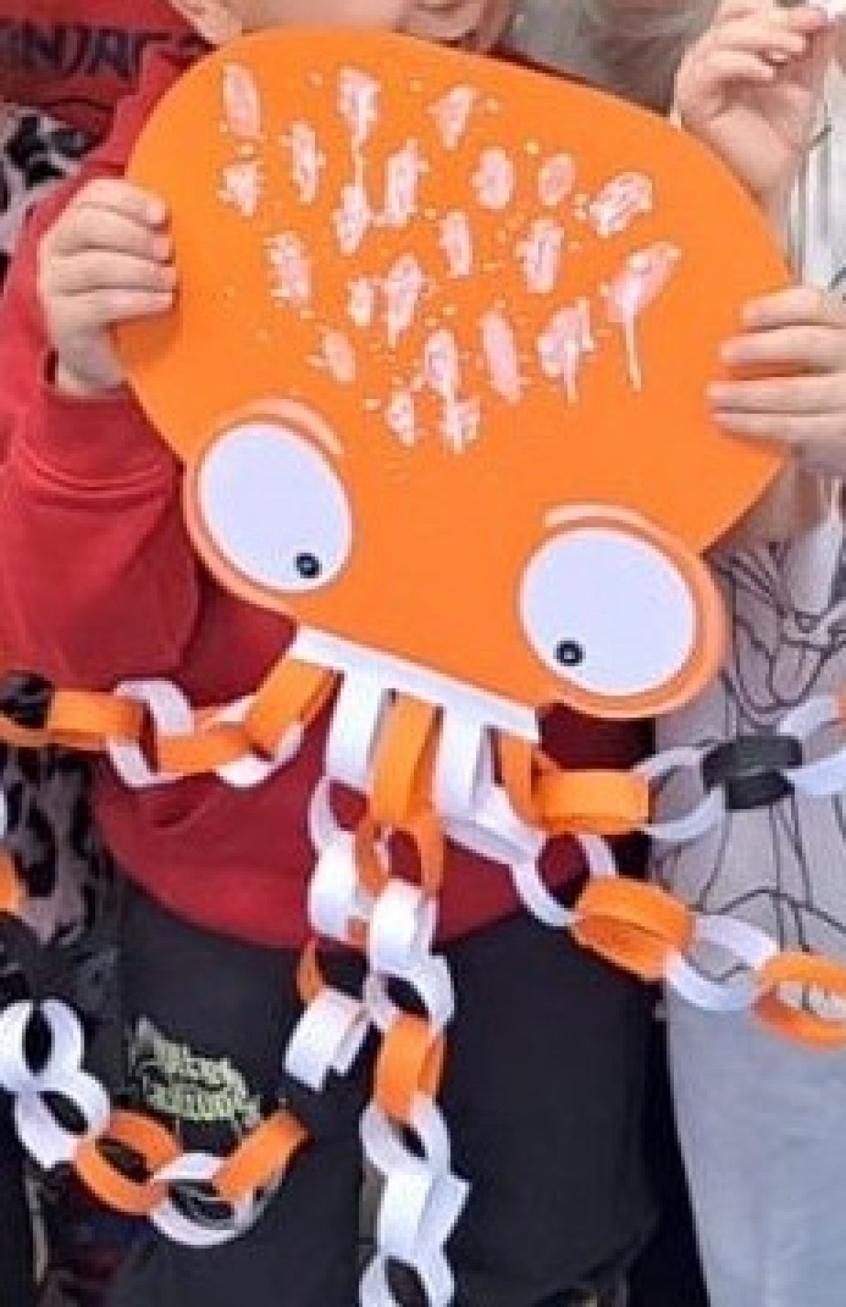 Uwieńczeniem tego spotkania było wykonanie długich macek, które  doczepione zostały do wielkiej głowy ośmiornicy.
