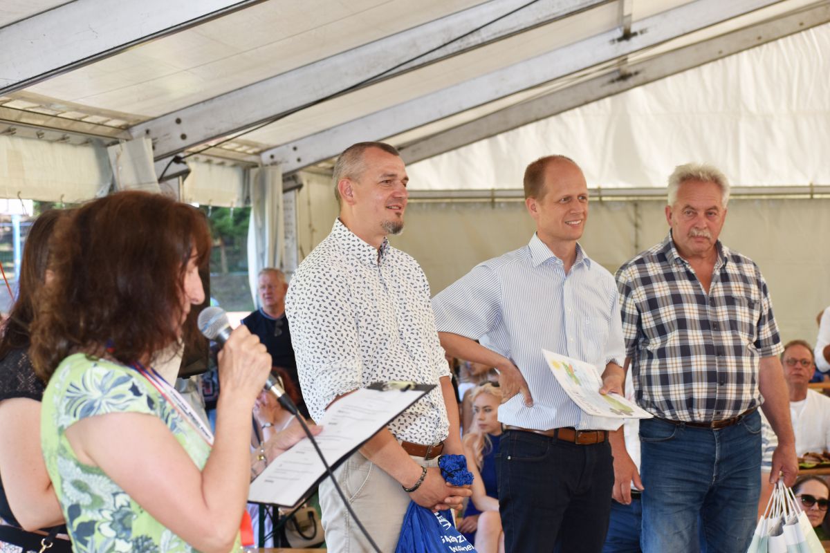 Z okazji święta miasta nasza biblioteka przygotowała również Konkurs Wiedzy o Ozimku skierowany do uczestników wydarzenia. Mieszkańcy naszej gminy oraz goście zmierzyli się z zagadnieniami dotyczącymi historii i współczesności gminy, ale również odpowiadali na pytania o miasta partnerskie. Okazało się, że najlepiej znane są dwa z nich: Heinsberg i Rýmařov, które najdłużej są partnerami Ozimka. W tym roku obchodzimy przecież piękne jubileusze współpracy – 30-lecie partnerstwa z Heinsbergiem i 25-lecie z Rymarzowem. Osoby, które udzieliły poprawnych odpowiedzi związanych z miastami partnerskimi otrzymały bardzo ciekawe nagrody. Otóż w dniach 30 września do 3 października 2022 roku wezmą udział w wyjeździe ozimskiej delegacji do Heinsberga i będą miały okazję podziwiać miasto z lotu ptaka, dzięki przelotowi samolotem ufundowanemu przez tamtejszy aeroklub.