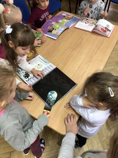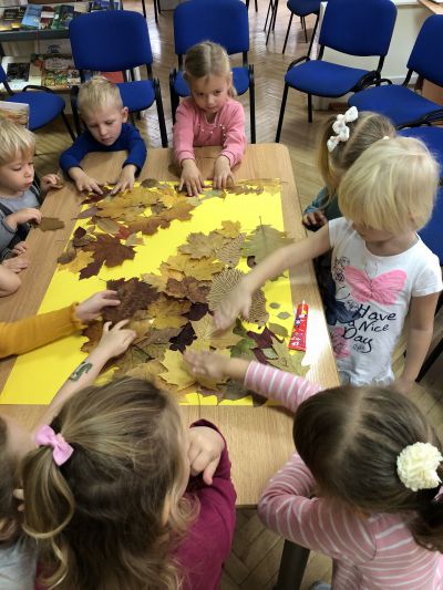 Na zajęciach poruszano temat znaczenia liści w ekosystemie m.in. jako nawozu i schronienia dla owadów, mięczaków i małych ssaków, np. jeży. Podczas pogadanki wykorzystano także książeczki ze zbiorów biblioteki: „Drzewo” autor R. Mattioli, „Nowy przyjaciel Tuptusia” L. Driscoll oraz książki z serii „Co i jak”: „Drzewa” i „Lasy tropikalne”. Nie obyło się bez przeglądania publikacji z ciekawostkami przyrodniczymi i nie tylko.