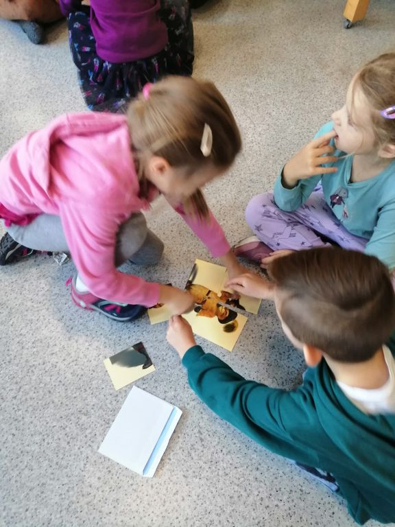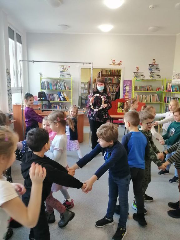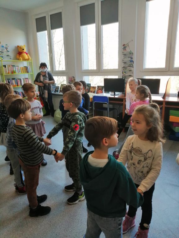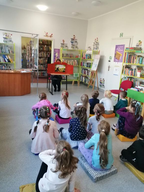 16 listopada 2021 naszą bibliotekę odwiedziła grupa Witaminek z PP nr 1 w Ozimku. Dzieci wysłuchały baśni Braci Grimm pt. "Królowa pszczół" w formie teatrzyku kamishibai, rozwiązały kilka zagadek, bawiły się "w pszczoły i ule" oraz ułożyły puzzle związane z postaciami z bajek. Porozmawialiśmy również na tematy, które pojawiły się w baśni, m.in. niszczenie przyrody, dokuczanie zwierzętom. Punktem kulminacyjnym było "buszowanie" w skrzyneczkach z dziecięcymi nowościami wydawniczymi  -  mamy nadzieję, że przyciągną one znów do biblioteki naszych młodszych czytelników ????