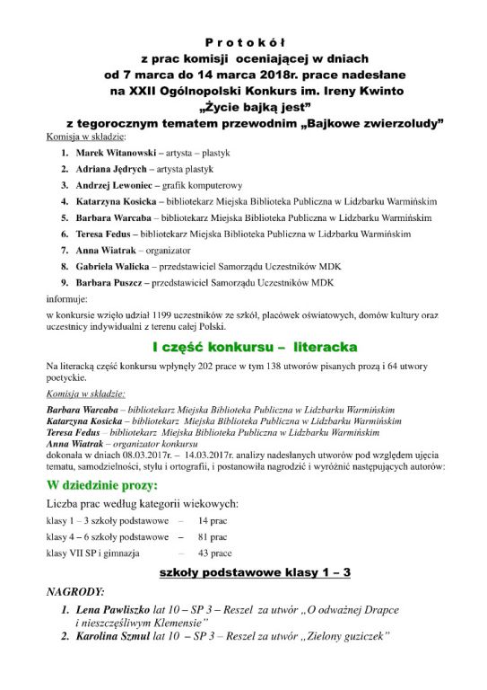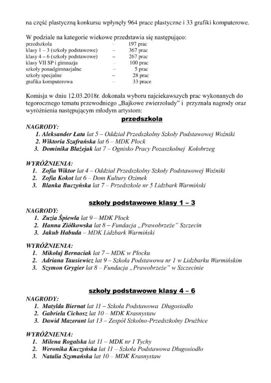 Miło nam poinformować, o kolejnym sukcesie naszych wychowanków. W XXII Ogólnopolskim Konkursie im. Ireny Kwinto "Życie bajką jest", uczestniczki kółka plastycznego, prowadzonego przez p. Agnieszkę Jarocką działającego w Domu Kultury w Ozimku, Zofia Kokot oraz Julia Tybulczyk zdobyły wyróżnienie. Dodatkowo z 997 nadesłanych prac wybrano 24, które wyeksponowano na wystawie pokonkursowej, a wśród nich znalazła się praca Marceliny Nieświec.