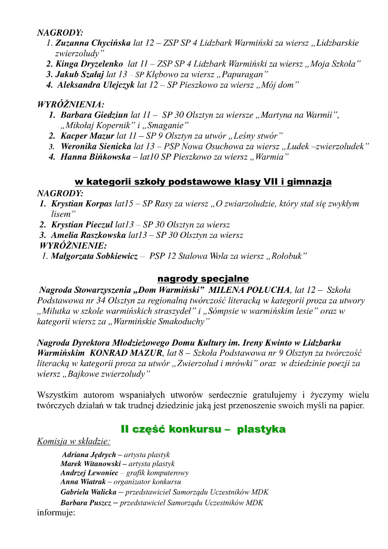 Laureatkom gratulujemy i życzymy kolejnych sukcesów.