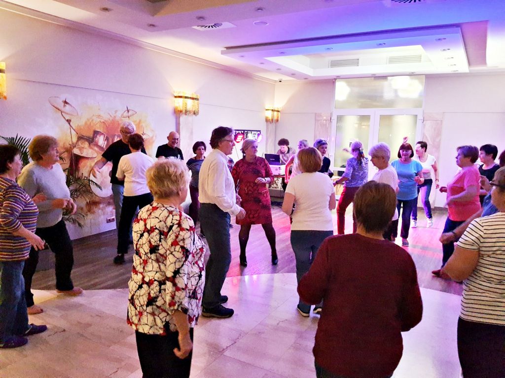 Ważnym elementem zajęć, który bardzo tej międzynarodowej grupie przypadł do gustu były tańce integracyjne. Tańce, będące aktywnością psychoruchową, poprawiającą pamięć, koordynację ruchową, koncentrację, orientację w przestrzeni, działające relaksacyjnie i antydepresyjnie. Integrują i łączą we wspólnej zabawie pomagającej w osiągnięciu swoistej synergii. Grupa nauczyła się wiele tańców pochodzących z różnych krajów.