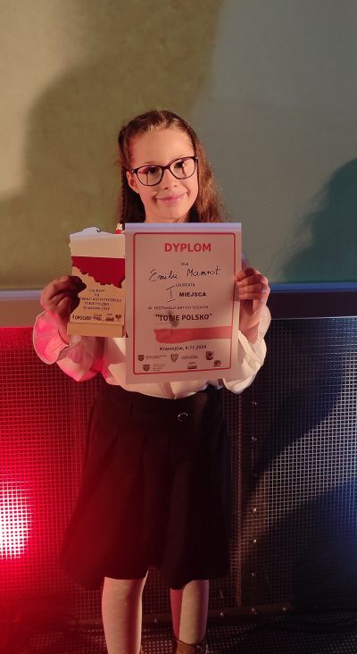 Wspaniałymi sukcesami naszych wokalistek zamykamy tegoroczne obchody Święta Niepodległości. Emilia Mamrot zdobyła I miejsce w swojej kategorii podczas Festiwalu Artystycznego „Tobie Polsko” w Jura Parku w Krasiejowie.