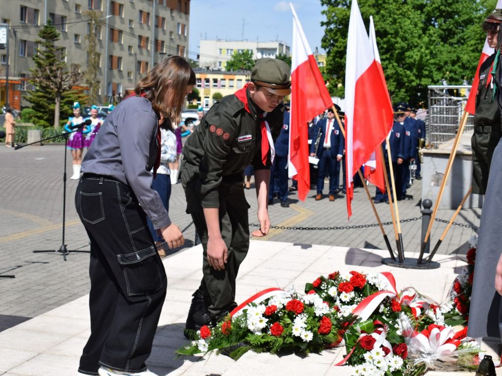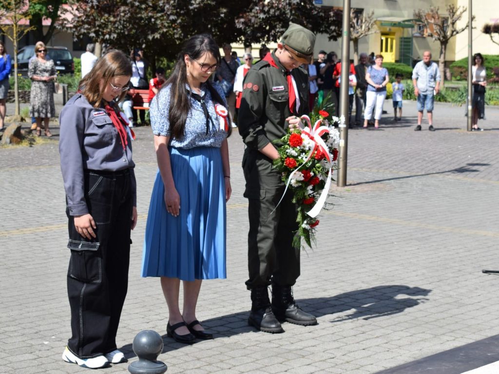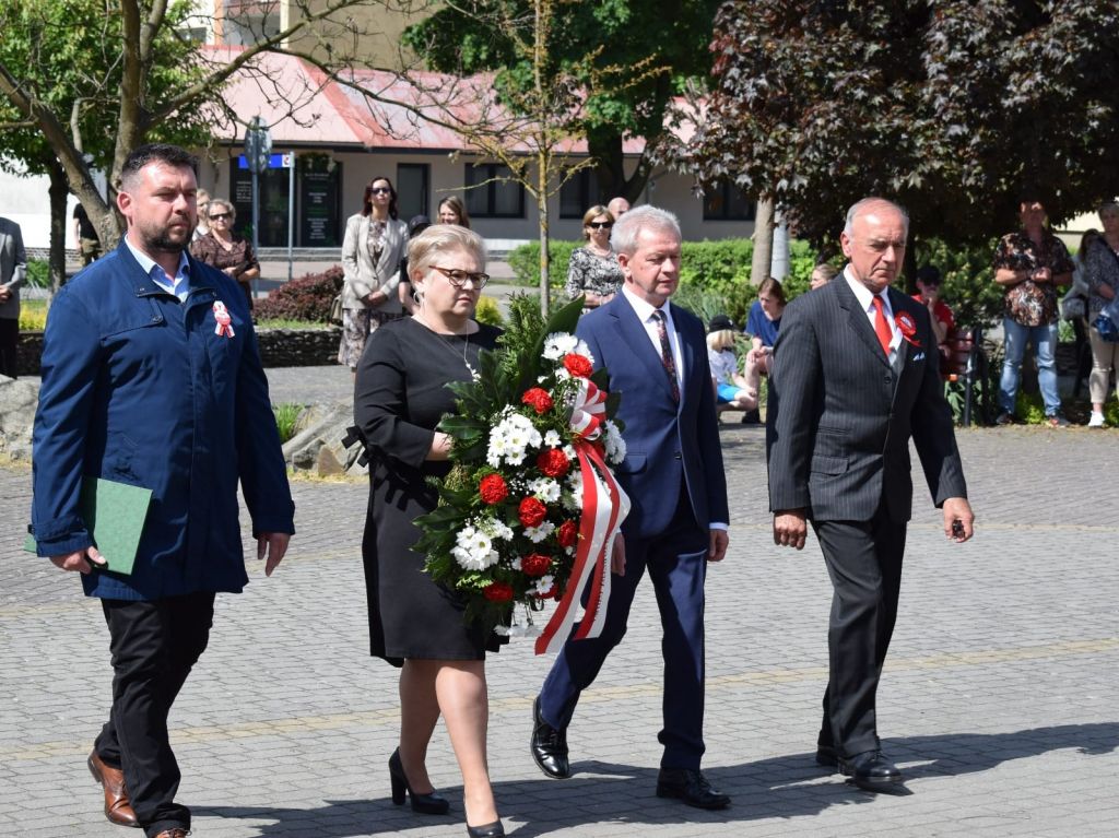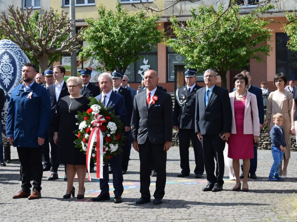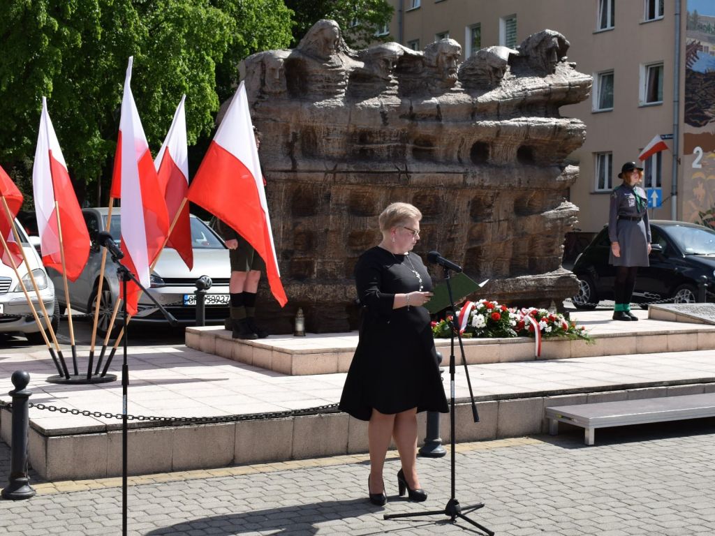 po odegraniu przez orkiestrę hymnu narodowego, odbyła się uroczystość złożenia wiązanek kwiatów. Z ramienia Burmistrza Ozimka Mirosława Wieszołka głos zabrała Sekretarz Gminy Barbara Durkalec, która w swym wystąpieniu nawiązała do znaczenia uchwalonej w 1791 roku Konstytucji 3 Maja, ale również do jubileuszu 20-lecia wstąpienia Polski do Unii Europejskiej oraz korzyści, jakie Polska i jej lokalne społeczności mają z udziału we wspólnocie europejskiej