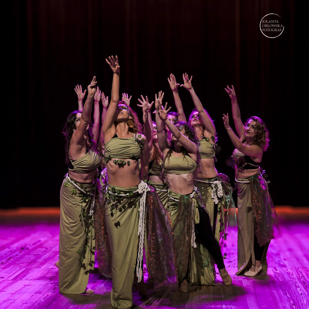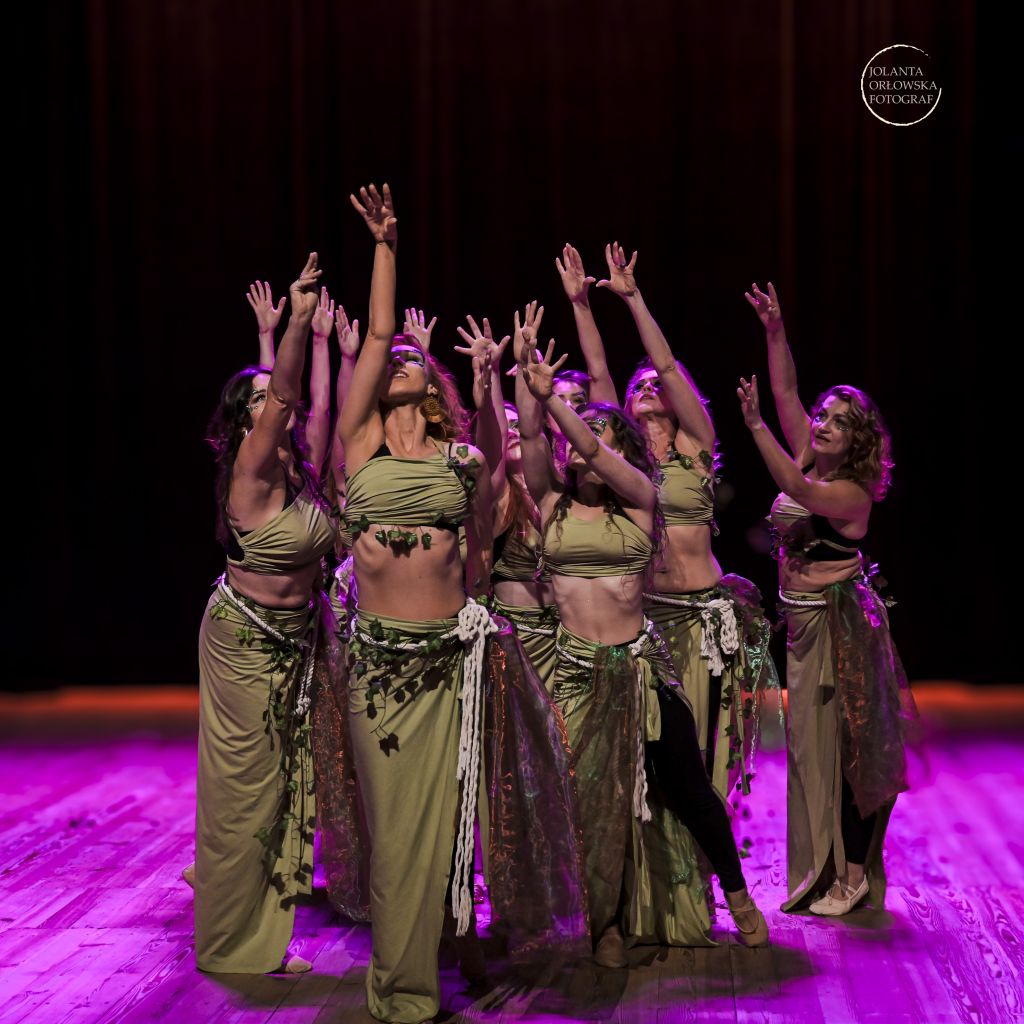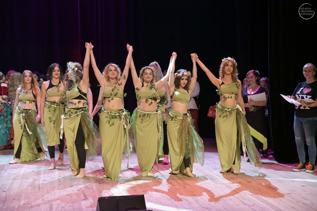 Nadziela przywitała nas słoneczną pogodą, ale niestety grupowe zajęcia porannej jogi nie odbyły się. Większość uczestniczek zajęła się kształtowaniem swojego wizerunku, nieliczne wyruszyły zwiedzać klimatyczną Nysę. W południe, nerwowa atmosfera dała się nam wszystkim we znaki, ponieważ przyszedł czas (mocno ograniczony) na próbę generalną na scenie. Nieoczekiwane modyfikacje ustawienia, zmiany położenia, wyznaczanie środka, wystające drzazgi z podłoża, zaskakujący brak małych, lecz ważnych elementów stroju, nieco ochłodziły nasz entuzjazm i na pewien czas atmosfera zrobiła się oziębła. Na szczęście na krótko. Równo o 16:00, ponieważ organizatorzy wszystko dopięli na ostatni guzik, z głośników rozbrzmiały rytmy orientalne i widowisko rozpoczęło się na dobre. Nyski Dział Promocji bardzo się postarał, ponieważ na widowni zasiadło ponad 350 osób, więc było z kim dzielić się taneczną radością. Najpierw ja, jako kaszmirowa instruktorka tańczyłam solówkę, która na szczęście pozwalała mi na improwizowanie i nie przejmowanie się zbytnio precyzyjnym ustawieniem. Tańczyło mi się bardzo przyjemnie, ale stres wywołany chęcią żeby „grupowe” wyszły dobrze, był lekko przytłaczający. Pierwszy wspólny układ zatańczyłyśmy do klasycznej pieśni pn. „Enta Omry” co oznacza: „Jesteś moim życiem”. Na scenie zespół działa jak jeden organizm i zdecydowanie, my tańczące, czujemy ogromną energię podczas tańca. Wyszło równo, energetycznie i emocjonalnie, czyli tak jak chciałam. Fajnie jest usłyszeć po gali coś w stylu: „No, ten układ ze słowiańską muzyką z Wiedźmina był super, fajnie, że tańczycie też do innej muzy”. Także „klasyka” chyba wyszła nam dobrze. Następnie przyszedł czas na układ, który bardziej podobał się widzom, lakonicznie przez nas nazywany, „słowiański”, który tak naprawdę nosi nazwę: „Pieśń Wił: Taniec Cienia i Światła”. Choć stroje nie błyszczały, nie odkrywały aż tak wiele ciała, spod zwiewnych zielonych sukienek wystawały przeszkadzające czarne elementy ubioru, a tiulowe woale były ledwo widoczne to wyszło zgodnie z pierwotnym zamysłem. No i muzyka z „Wiedźmina” zrobiła swoje. Ciężko oddychając, bo układ był fizycznie wymagający, schodziłyśmy ze sceny naelektryzowane i uśmiechnięte. Jeszcze czas na finał ze wszystkimi uczestnikami ponad dwu godzinnej gali. Jako wyraz zmęczenia postanowiłyśmy nie przebierać się w ociekające kryształkami, finałowe czarne stroje. Zostałyśmy w tych słowiańskich. Finał był super, chociaż na naszych szyjach nie zawisły ociekające ani złotem, ani srebrem, ani brązem medale. Za to dostałyśmy mnóstwo uścisków i podziękowań od organizatorów, mnóstwo miłych słów i mnóstwo darów: słodyczy, gadżetów od sponsorów, oklasków, uśmiechów, kwiatów.... Czy wszyscy byli zadowoleni? Nie oczekujmy rzeczy niemożliwych. Z mojej perspektywy atmosfera była bardzo przyjazna i zdecydowanie dała mi, jako instruktorce zespołu, mnóstwo motywacji do dalszej, wytężonej pracy. Wydarzenie odbyło się od 08.06 do 09.06.2024r.