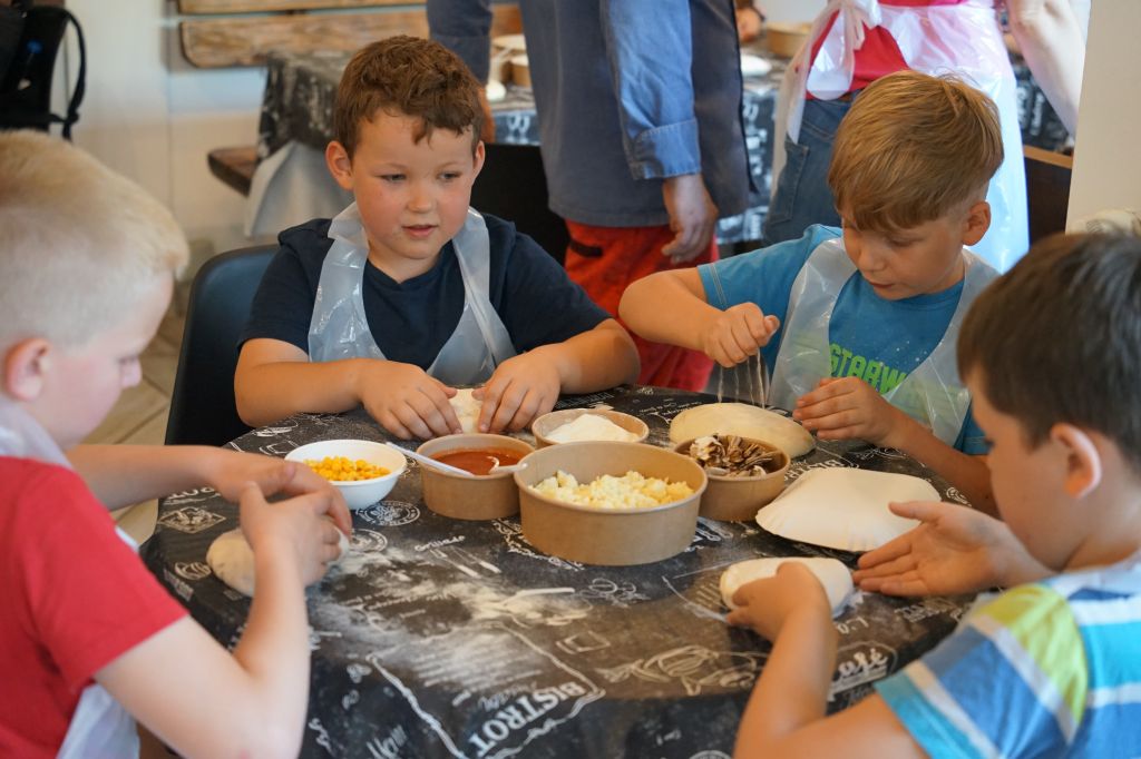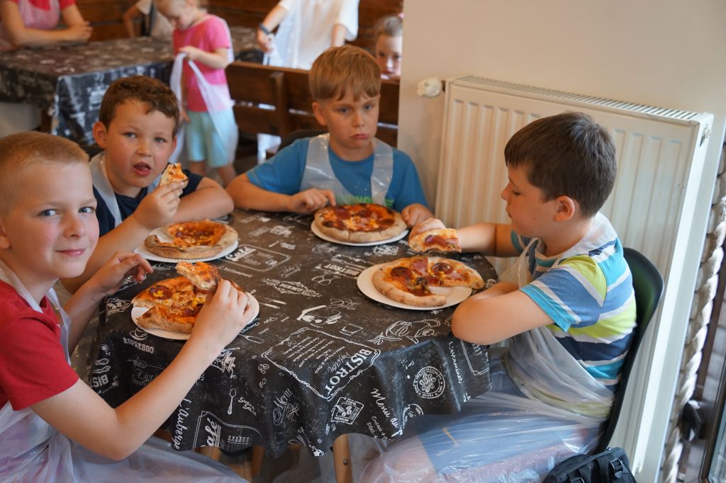 W rozpoczynający zajęcia poniedziałek, sprawdzono obecność uczestników oraz przedstawiono obowiązujący za zajęciach regulamin. Tego samego dnia odbyły się zajęcia sportowe, które zostały zrealizowane we współpracy ośrodkiem sportu i rekreacji MOSiR. Najbardziej emocjonującym elementem pierwszego dnia okazała się być nauka robienia pizzy, która była możliwa dzięki „ Bistro Pracownia Sztuki Kulinarnej”. Dzieciaki chętnie uczestniczyły w procesie tworzenia własnej pizzy i równie ochoczo brały udział w procesie jej zjadania.