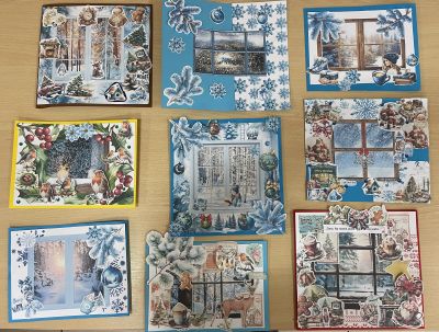 W dniu, 9 grudnia 2025r. w Filii Bibliotecznej w Grodźcu odbyły się zajęcia plastyczne dla uczniów klasy 8 z grodzieckiej szkoły podstawowej. Tematem warsztatów była zimowa kartka, wykonywana w technice scrapbookingu.
