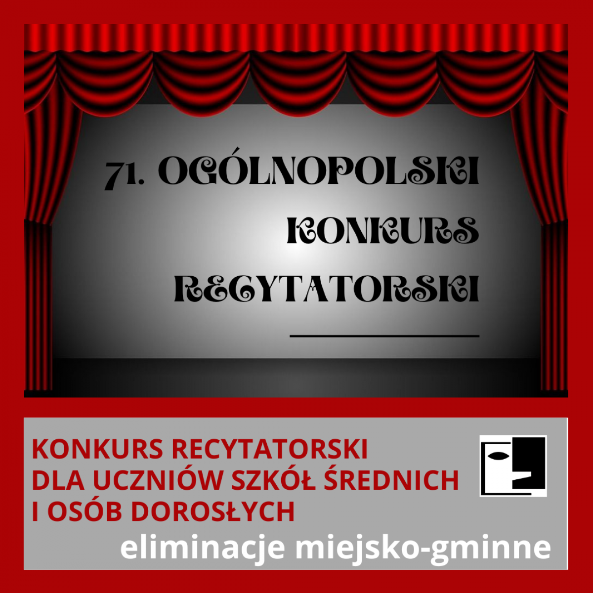 Informujemy, że termin miejsko-gminnych eliminacji 71. Ogólnopolskiego Konkursu Recytatorskiego został przeniesiony z 24 marca na 1 kwietnia 2026. Prezentacje uczestników rozpoczą się o godzinie 10.00 na scenie Domu Kultury w Ozimku.