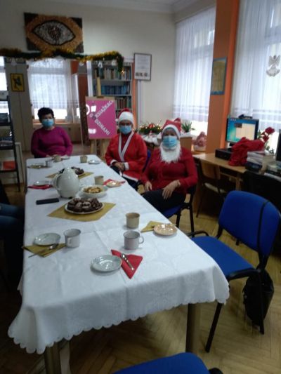 6 grudnia 2021 roku w Filii Bibliotecznej w Dylakach odbyło się kolejne spotkanie Dyskusyjnego Klubu Książki. Choć  w związku z nasileniem epidemii wszyscy uczestnicy musieli przestrzegać na reżimu sanitarnego, ta grudniowa dyskusja podsumowująca roczną działalność klubu przebiegała w szczególnej, świątecznej atmosferze. Okazało się bowiem, że Św. Mikołaj bardzo lubi  miłośników książek, którzy w mijającym roku byli grzecznymi czytelnikami, dlatego wszystkim członkom klubu przyniósł prezenty, a nawet włączył się do dyskusji.