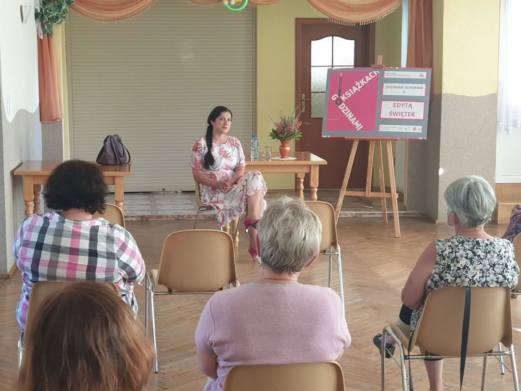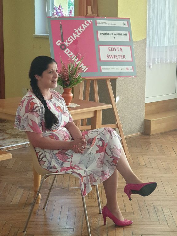 Po wielomiesięcznej przymusowej przerwie w organizacji stacjonarnych wydarzeń kulturalnych wreszcie przepisy sanitarne pozwoliły na spotykanie się w małych grupach w zamkniętych przestrzeniach.  Pierwszym w tym roku gościem Miejskiej i Gminnej Biblioteki Publicznej w Ozimku była  Edyta Świętek, autorka bardzo poczytnych sag rodzinnych oraz powieści obyczajowych z wątkami romansowymi i kryminalnymi, która już w listopadzie ubiegłego roku miała odwiedzić naszą gminę, ale z wiadomych względów tych planów nie udało się zrealizować. Jednak tym razem nic nie stanęło na przeszkodzie i 9 czerwca pisarka mogła się spotkać  z czytelnikami oraz członkami Dyskusyjnego Klubu Książki działającego od roku w Dylakach.