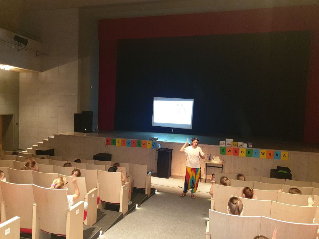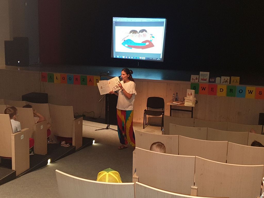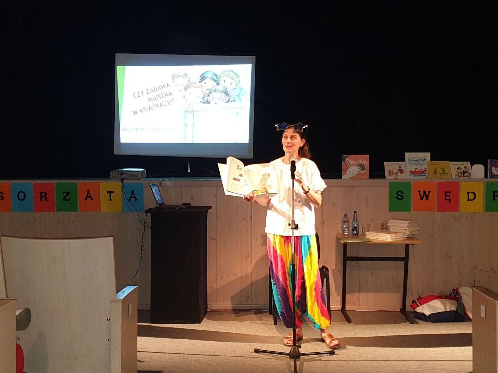 Natomiast po południu Małgorzata Swędrowska spotkała się z osobami dorosłymi, aby znaleźć odpowiedź na pytanie „Jak zachwycić dzieci książkami?”. Podczas swojej prelekcji opowiadała o czytaniu wrażeniowym, specyfice pracy z grupą dziecięcą oraz o polecanej literaturze dla najmłodszych czytelników. Uczestnicy mogli się też zapoznać z jej najnowszą książką zatytułowaną „777 pomysłów na zabawy z książką”.