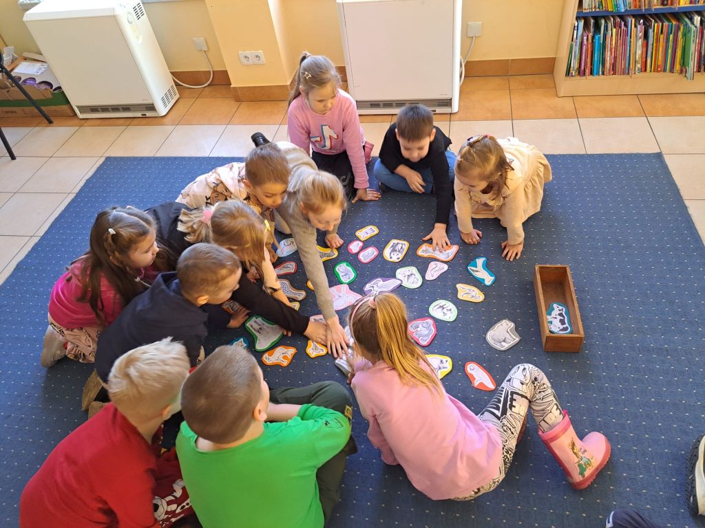 W czwartkowy poranek 4 kwietnia 2024 Bibliotekę dla Dzieci odwiedziły dwie grupy Oddziału Przedszkolnego z SP nr 3: Poziomki i Jagódki. Tematem spotkania była ciekawostka - skąd sie biorą książki w bibliotece?