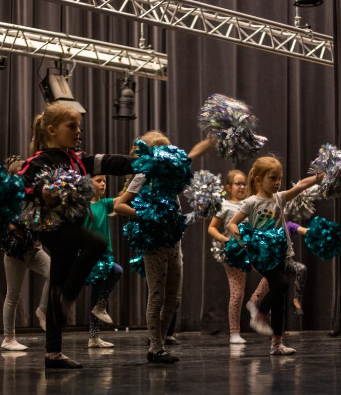 Początkujące tancerki mają od 5 lat. Na zajęciach poznają podstawowe elementy tańca mażoretkowego, ćwiczą proste twirlingi z pom ponami oraz koordynują pracę ciała z rekwizytem. Tancerki biorą również udział organizowanych występach. Instruktorem grupy jest Justyna Bochenek.