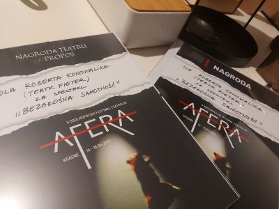 W Krasnem pod Rzeszowem odbyła się druga edycja Ogólnopolskiego festiwalu teatralnego "Afera", na której I nagrodę zdobył lalkowy spektakl teatru Fieter "Bezgłośna samotność". Spektakl poza tym został wyrózniony nagrodą przyznana przez zespół teatralny A'Propos, który jest głównym organizatorem festiwalu.