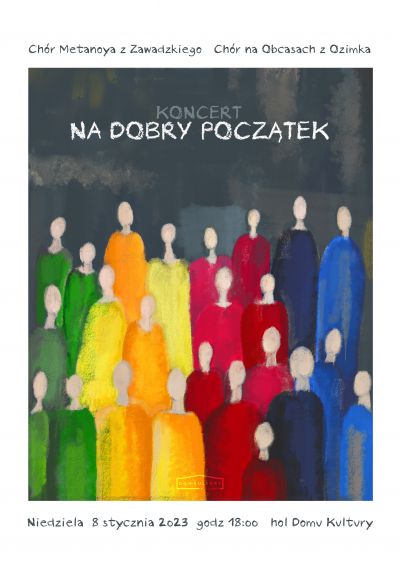 "Na dobry początek" - koncert dwóch chórów: naszego Chóru Na Obcasach oraz chóru Stowarzyszenia METANOYA z Zawadzkiego pod kierunkiem Sybilli Czech. W programie kolędy i pastorałki oraz inne utwory. Licznie zgromadzona bardzo dobrze przyjęła koncert.