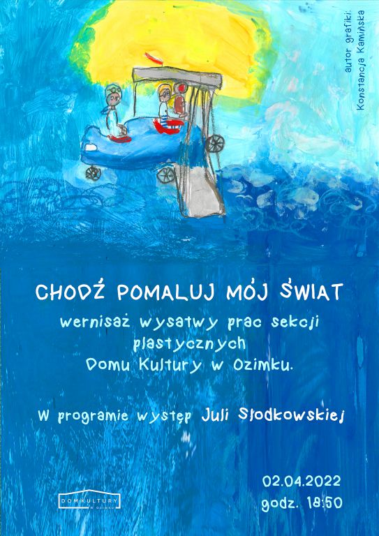 Zakończenie roku szkolnego to również okazja do podsumowań artystycznych. I tak w zeszły piątek odbył się wernisaż prac plastycznych stworzonych podczas zajęć prowadzonych przez Agnieszkę Jarocką. Wydarzenie odbywało się pod hasłem „Dzieci i ryby głos mają” nawiązującym do warsztatów integracyjnych, które odbyły się z udziałem młodzieży oraz dorosłych z Ukrainy, a prowadzone były przez naszą instruktorkę Agnieszkę oraz Olena Komkowa i Marina Bugakowa z Ukrainy. Podczas wernisażu odbyły się zabawy integracyjne oraz wspólne śpiewanie pod przewodnictwem Julii Leontievy. Było muzycznie, ruchowo i kolorowo. Do zobaczenia we wrześniu.