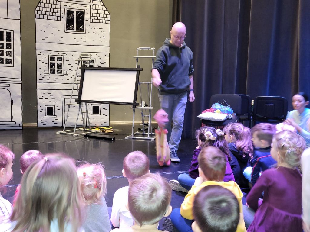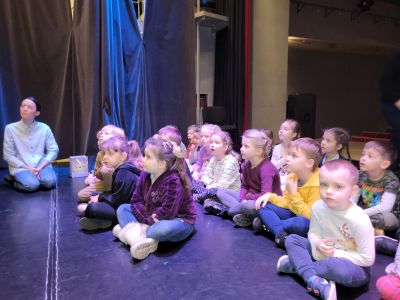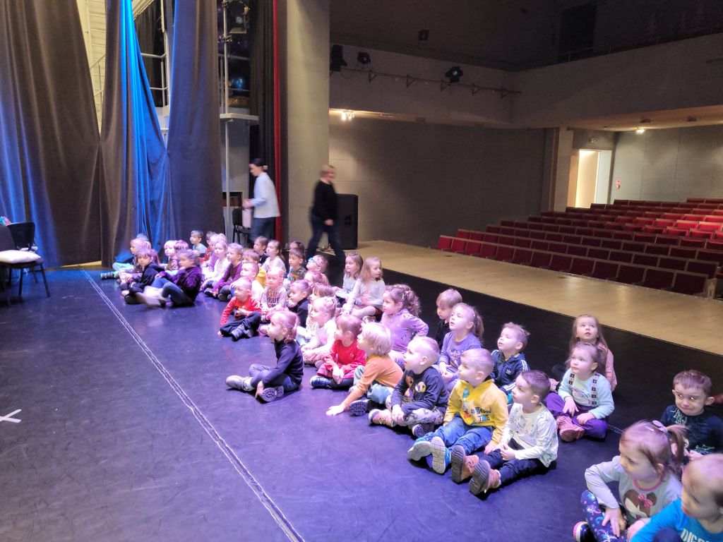 Gościlismy dzisiaj dzieci przedszkolne z grup: 4 i 5 latków, Przedszkola Publicznego nr 4 w Ozimku, które poznawały tajemnice sceny i teatru.