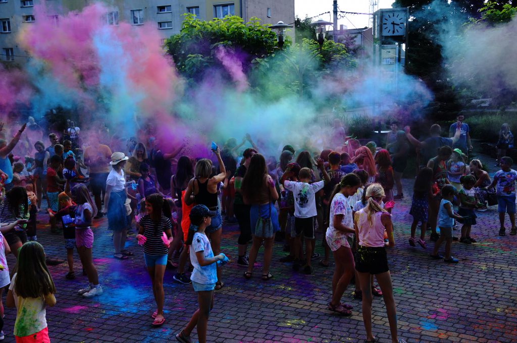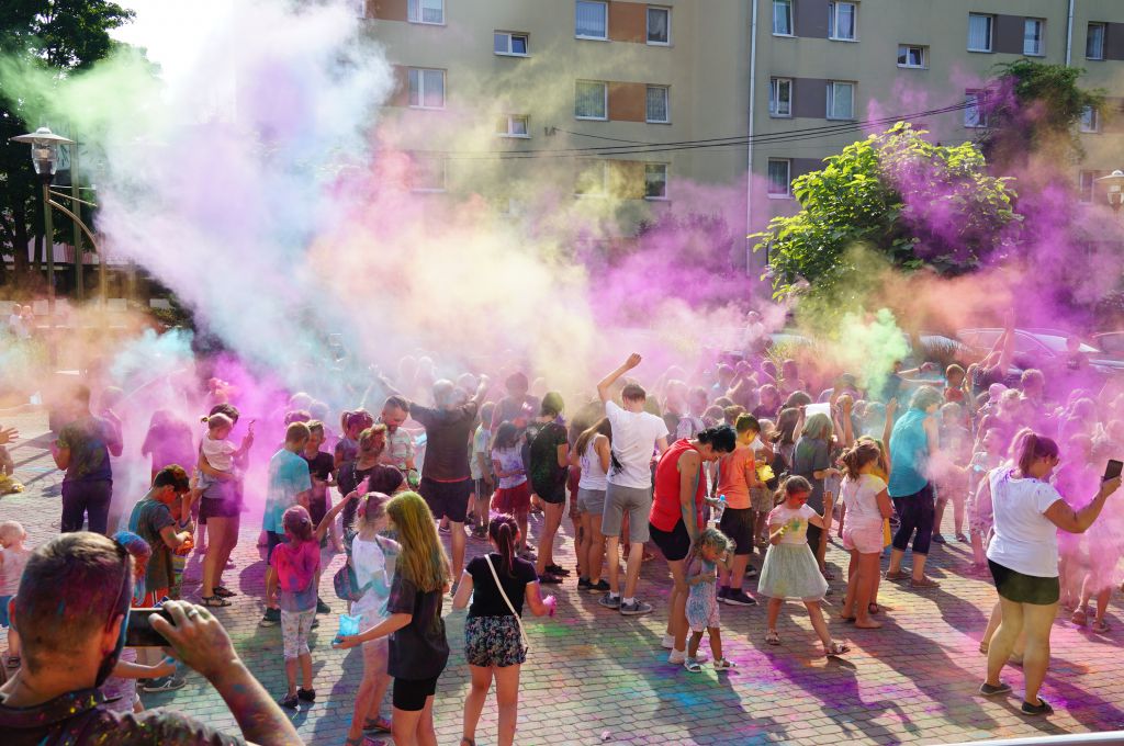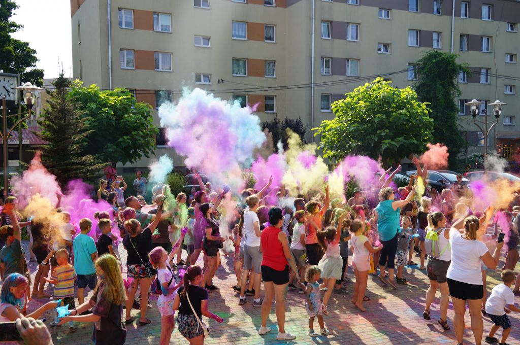 W sobotnie popołudnie pod domem kultury było tak... bardzo kolorowo!!! W zabawie brały udział całe rodziny i nikt nie wrócił do domu w stanie, w jakim z niego wyszedł.