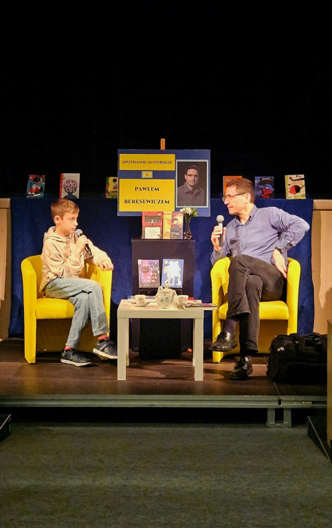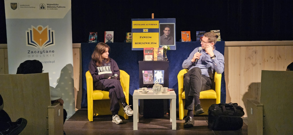 24 października 2025 roku w ramach projektu kulturalnego "Zaczytane Opolskie" mieliśmy przyjemność gościć Pawła Beręsewicza, znanego autora książek dla dzieci i młodzieży i laureata wielu prestiżowych nagród literackich. W wydarzeniu uczestniczyli uczniowie klas piątych i szóstych, którzy przy herbatce rozmawiali z pisarzem o jego twórczości, w tym o młodzieżowych horrorach i kryminałach.