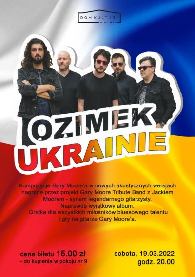 W sali widowiskowej Domu Kultury odbył się koncert projektu Gary Moore Tribute Band feat. Jack Moore. Publiczność mogła posłuchać klimatycznie zaaranżowanych utworów Gary`ego Moora. Znane utwory wzięli na warsztat wybitni muzycy w tym syn Gary`ego - Jack. Całość dopełniał charyzmatyczny wokal. Koncert odbył się pod hasłem "Solidarni z Ukrainą" dlatego też przed koncertem publiczność miała możłiwość przekazać finansowe wsparcie dla Ukrainy. Zbiórka została przeprowadzona przez Klub Honorowych Dawców Krwi z Ozimka. Sobotni wieczór publiczność mogła uznać za bardzo udany.