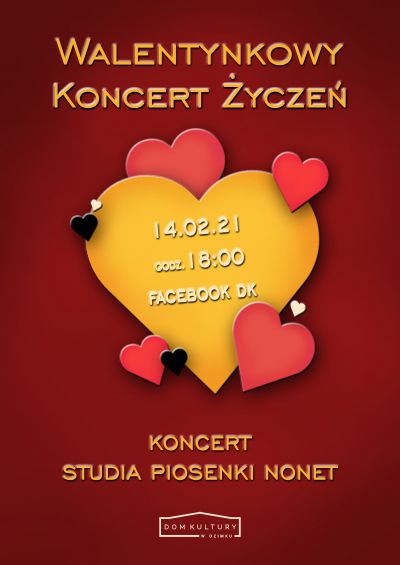 Z okazji Święta Zakochanych, z tej okazji, w ostatnią można było obejrzeć „Walentynkowy Koncert Życzeń” na fanpage'u Domu Kultury w Ozimku. Prowadzący, Hanna Pogorzelska i Paweł Wielgus odczytali, wcześniej nadesłane do nas, życzenia dla ukochanych osób. Wokalistki ze Studia Piosenki Nonet zaśpiewały kilka pięknych, miłosnych utworów, a na koniec mogliśmy podziwiać parę ze Szkoły Tańca Sparta w Opolu, tańczącą romantyczną rumbę.