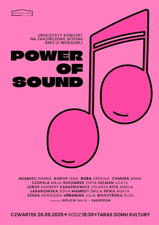 ZAKOŃCZENIE SEZONU ARTYSTYCZNEGO sekcji wokalnej Power of Sound.Na tarasie Domu Kultury w Ozimku wokaliści, na co dzień szlifujący swoje talenty na zajęciach zespołowych lub indywidualnych, mieli możliwość wykonania swoich ulubionych piosenek w przeróżnych kombinacjach: solo, w duetach lub kilkuosobowych zespołach, z gotowym podkładem lub z akompaniamentem na żywo. I choć forma, miejsce i luźny klimat koncertu zapowiadały zbliżające się wakacje, to wokaliści zaprezentowali szczytową formę swoich możliwości. Jak wyszło? Wierzymy, ze wszyscy bawili się wyśmienicie. Dziękujemy serdecznie za udział w wydarzeniu wszystkim wykonawcom, jak i słuchaczom: publiczności zgromadzonej pod sceną oraz tym, którzy chcąc lub nie, wysłuchiwali naszej muzyki z okolicznych domów. Zapraszamy do obejrzenia galerii zdjęć autorstwa Agnieszki Jarockiej.