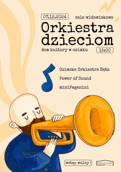 7 grudnia 2024 r.Koncert świąteczny "Orkiestra Dzieciom" z udziałem zespołu Mini Paganini oraz Power of Sound. Podczas koncertu na scenie pojawił się sam Święty Mikołaj, który oczywiście przyniósł ze sobą drobne podarki dla dzieci. Na holu można było kupić piękne rzeczy wykonane przez członkinie Klubu Szydełko i Druty z Ozimka.