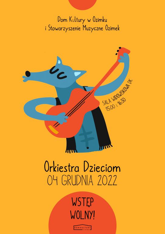 Na sali widowiskowej Domu Kultury w Ozimku odbył się koncert „Orkiestra Dzieciom” zorganizowany wraz ze Stowarzyszeniem Muzycznym Ozimek. Podczas koncertu najmłodsi słuchacze naszej gminy mogli posłuchać świątecznych utworów w aranżacji na orkiestrę, a także dowiedzieć się kilku ważnych informacji na temat działania orkiestry. Było mnóstwo śmiechu i zabawy, niekonwencjonalne próby dyrygowania orkiestrą, zagadki i wspólne muzykowanie. Dzieci mogły też wcielić się w rolę dyrygenta, wziąć do ręki batutę i spróbować zadyrygować orkiestrą.