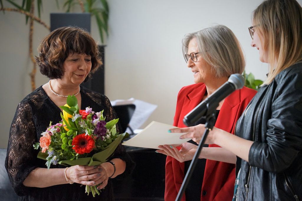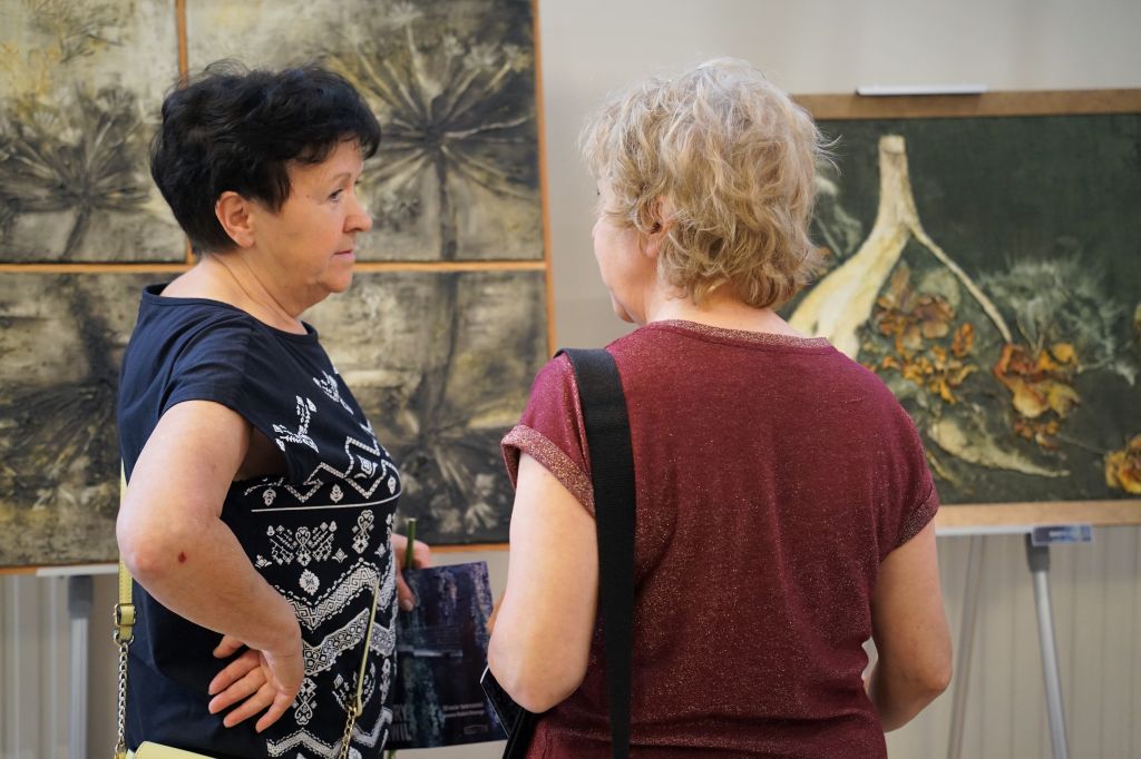 Trzydzieści pięć lat … każdy rok to osobny kadr, osobna przejmująca chwila. Piątkowy wieczór wypełniony był wspomnieniami, podziękowaniami, łzami wzruszenia. Swoją chwile przeżywała wraz z zebranymi osobami, Przyjaciółmi Joanna Dubiel-Stonoga. Nauczycielka plastyki, techniki i etyki, od czterdziestu lat związana z placówkami oświatowymi w Ozimku i Opolu. Łączy pracę pedagoga z byciem artystą plastykiem – aktywnym twórcą. Od wielu lat bierze udział w wielu plenerach w Polsce i zagranicą. Jej bogaty dorobek artystyczny stanowi ponad sto wystaw indywidualnych i zbiorowych. Podczas wernisażu wystawy „Kadry chwil – 35-lecie twórczości Joanny Dubiel Stonogi” przybyłym gościom towarzyszyły dźwięki muzyki klasycznej. Agnieszka Wilczyńska akompaniująca na fortepianie córce Esterze Wilczyńskiej – Dyplomantce I stopnia Państwowej Szkoły Muzycznej w Opolu, w klasie wiolonczeli Pani Anny Furkałowskiej. Występ tym bardziej chwytał za serca, iż odbywał się w dniu matki. Wystawa prezentuje obrazy stworzone w technice własnej. Szeroka tematyka opiera się często o motywy roślinne, duchowe, w niektórych można dostrzec blask wkomponowanego szkła, starej lampy lub koła. Każdy z odwiedzających wystawę znalazł swój kadr. Fotorelacja: Szymon Poczatek