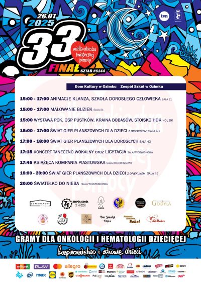 33. Finał Wielkiej Orkiestry Świątecznej Pomocy w Domu Kultury w Ozimku.