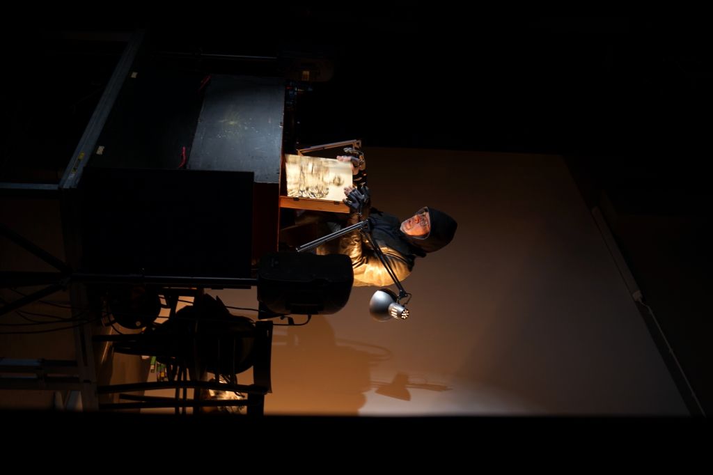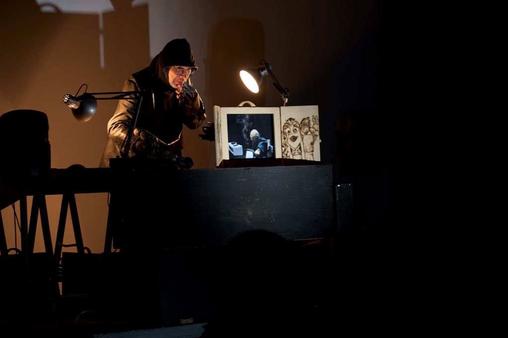 W sobotę, 10 stycznia wystartowaliśmy ze spektaklem Camus „She, Bye”, zrealizowanym w ubiegłym roku, laureatem ogólnopolskich festiwali i przeglądów teatralnych. Spektakl komediowy, monodram z wykorzystaniem elementów rodem z teatru kamishibai oraz lalek teatralnych, został w bardzo luźny, pastiszowy sposób oparty na motywach i elementach świata przedstawionego zawartych w twórczości Franza Kafki, Williama Shakespeare’a czy Raymonda Chandlera. Kryminał łączy się w nim z zabawą konwencjami literackimi i teatralnymi. Przedstawienie wykonane zostało przez Roberta Konowalika na sali widowiskowej, z widownią usadowioną na scenie wraz z aktorem.