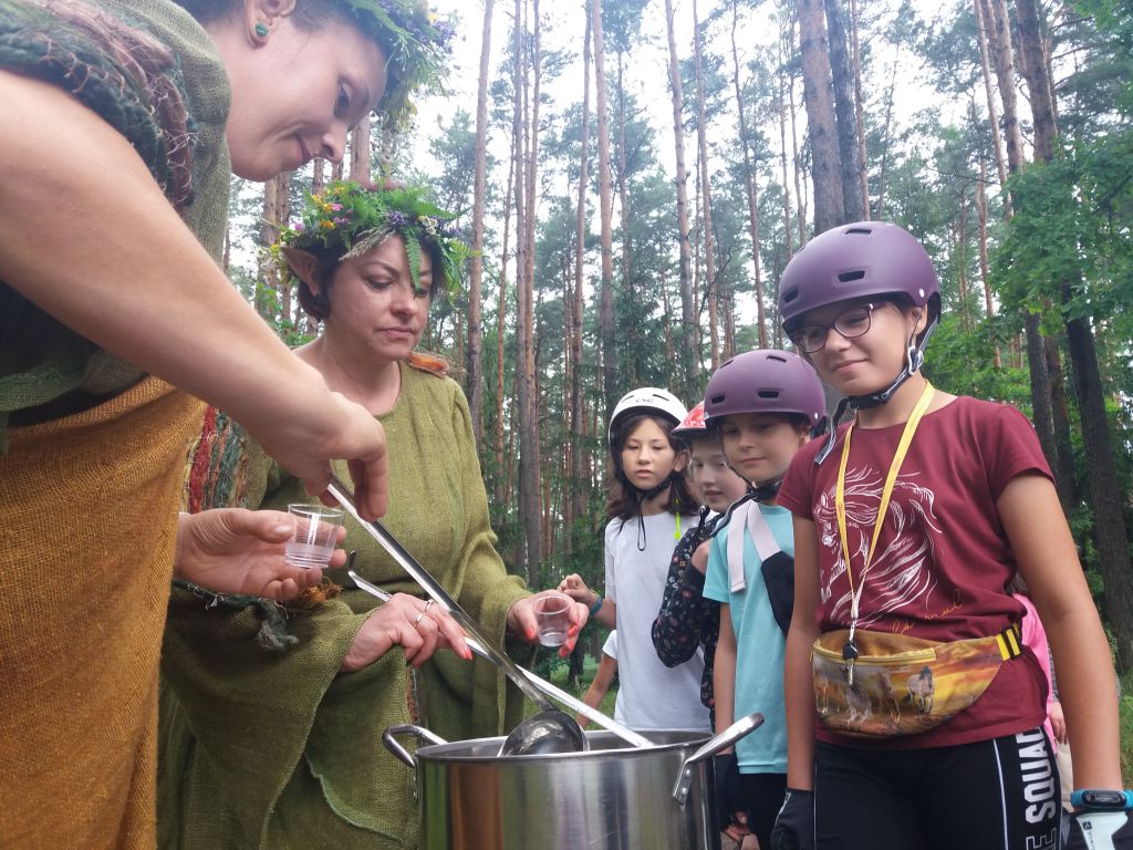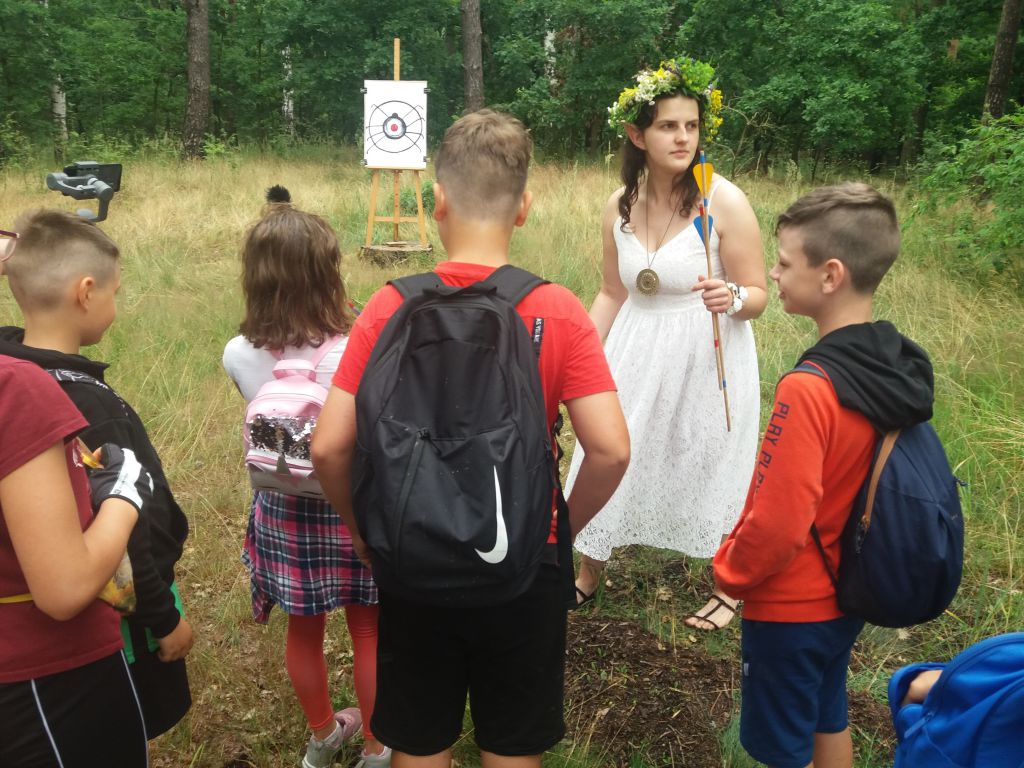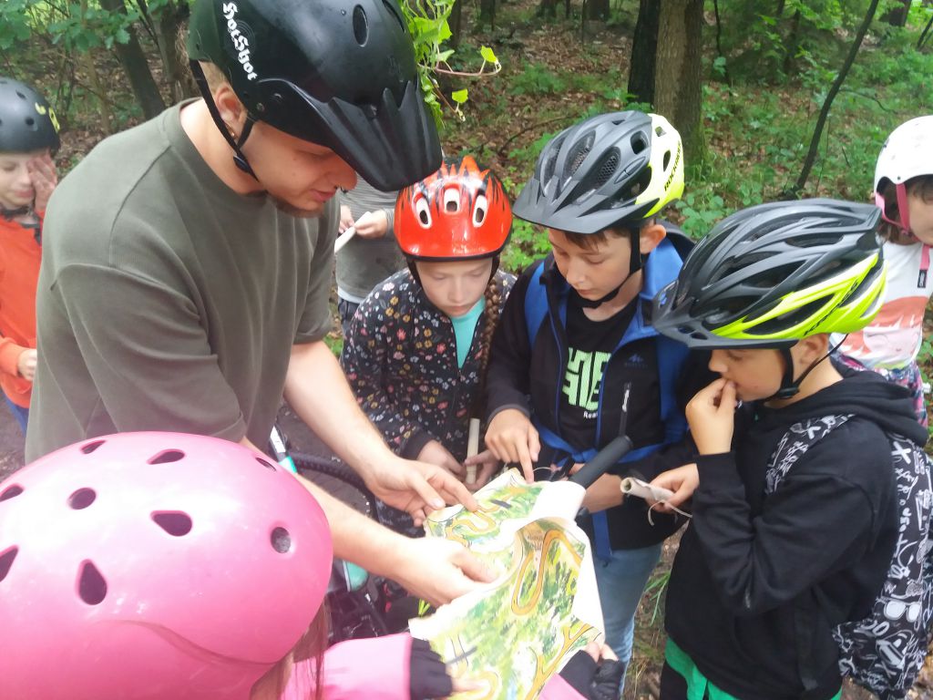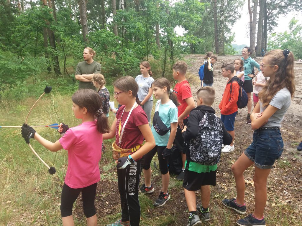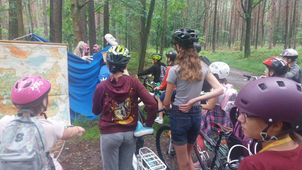 Ostatnim etapem Letnich Atrakcji była wyprawa rowerowa do Mrocznej Puszczy, czyli Królestwa Leśnych Elfów. 8 lipca, wyruszyliśmy spod domu kultury nieco później gdyż deszcz pokrzyżował nam plany. Zaraz na początku drogi natknęliśmy się na czarodzieja, który wcale nie chciał przepuścić grupy dzieci na rowerach, więc miał dla nich przygotowanych kilka zadań. W końcu jednak czarodziej dał nam mapy oraz przewodnika, Robin Hooda, który miał poprowadzić nas przez gęstwinę na Leśne Wzgórze, wprost do Króla Leśnych Elfów. Z małymi przeszkodami dotarliśmy do Elfickiego Zakątka. Tam arcyklejnoty i dary dla Króla Elfów zostały odnalezione. Dalsza droga przebiegła już pomyślnie. Mapy zaprowadziły nas do na Leśne Wzgórze, gdzie czekał na nas Król Elfów. Po wspólnym biesiadowaniu i strzelaniu z łuku, elfy wręczyły nagrody wszystkim uczestnikom wyprawy, wyróżniając trzy osoby, które najlepiej poradziły sobie z leśnymi wyzwaniami. Zmęczeni, lecz cali i zdrowi oraz szczęśliwi wróciliśmy pod Dom Kultury w Ozimku. Cieszmy się wakacjami i do zobaczenia za rok!