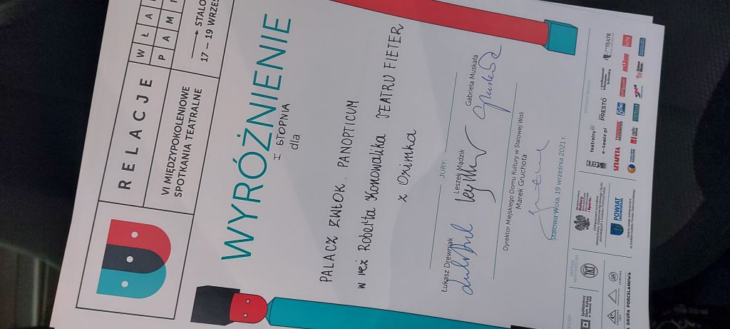 Podczas szóstej edycji Relacji. Międzypokoleniowych Spotkań Teatralnych, odbywających się w dniach 17- 19 września tego roku w Stalowej Woli, teatr Fieter działajacy w naszym domu kultury zdobył Wyróżnienie I stopnia za realizację spektaklu Palacz zwłok. Panoptikum, wg. prozy Ladislava Fuksa. Spektakle były oceniane przez Jury w składzie: Leszek Mądzik (reżyser, scenograf, malarz, fotograf, profesor sztuk plastycznych - Scena Plastyczna KUL), Gabriela Muskała (aktorka teatralna i filmowa, dramatopisarka), Łukasz Drewniak (krytyk teatralny, założyciel Gazety Teatralnej Didiaskalia, wykładowca Akademii Teatralnej w Warszawie).