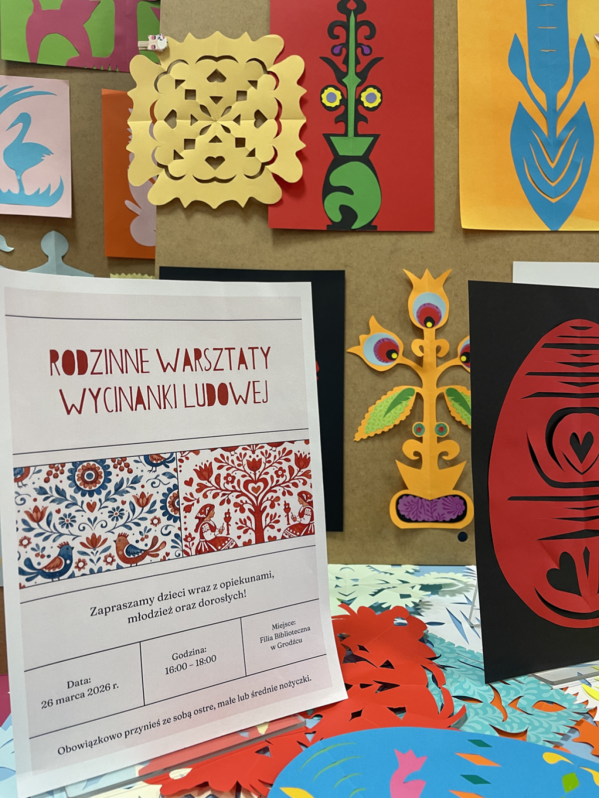 Wycinanka ludowa – rodzinne warsztaty w Filii Bibliotecznej w Grodźcu